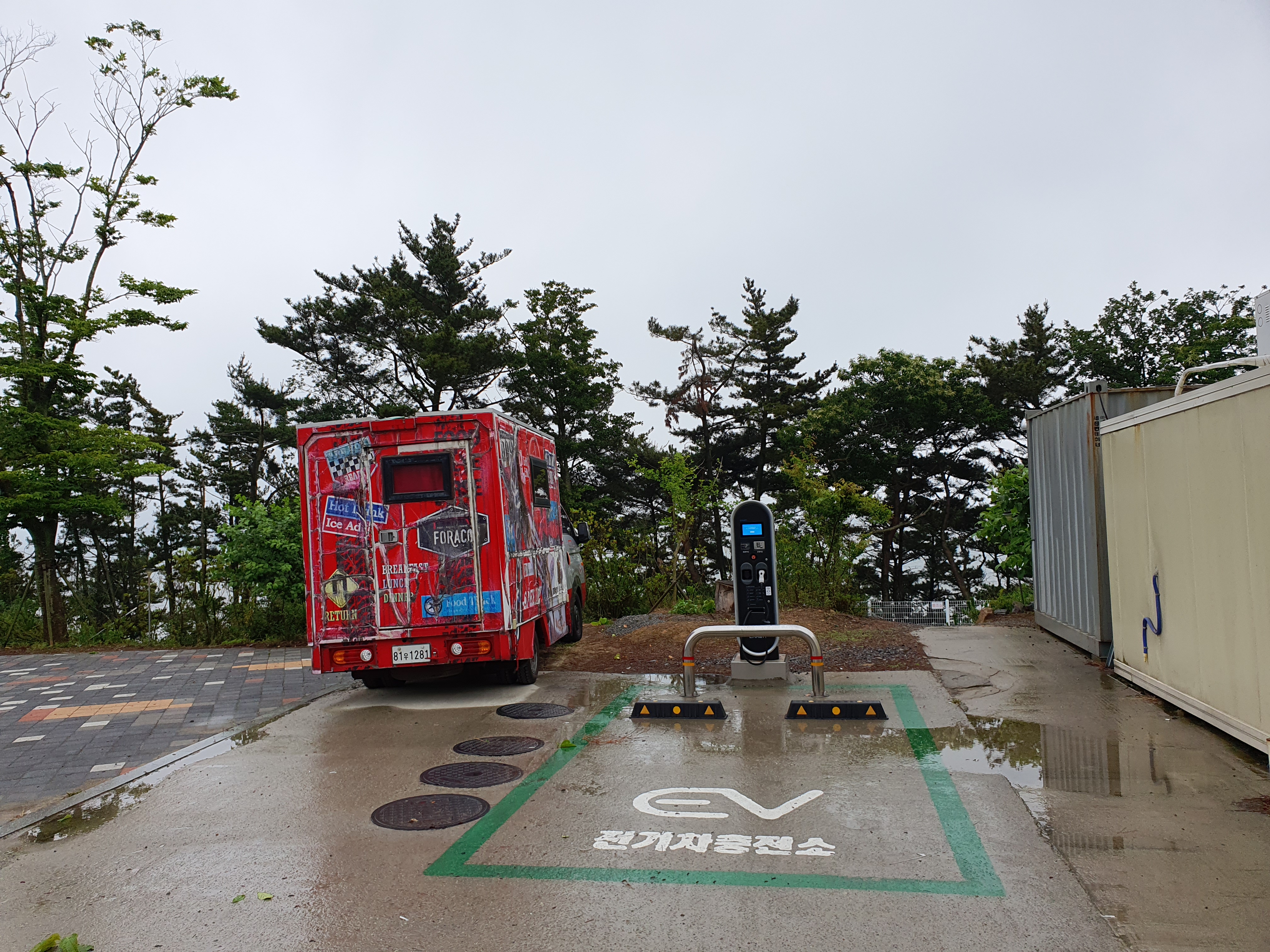 캠핑장에 전기차 충전소도 있습니다.(대박..)