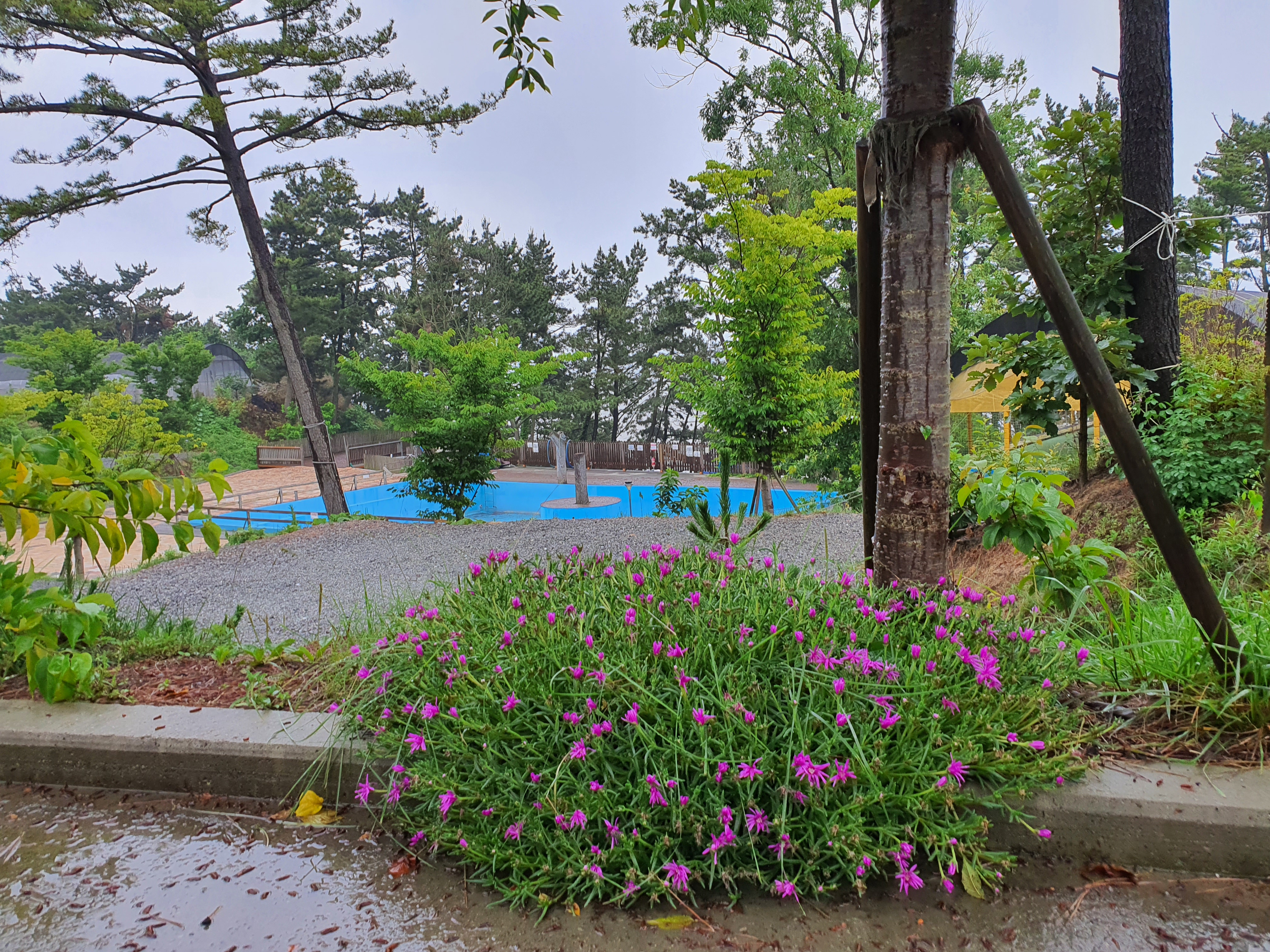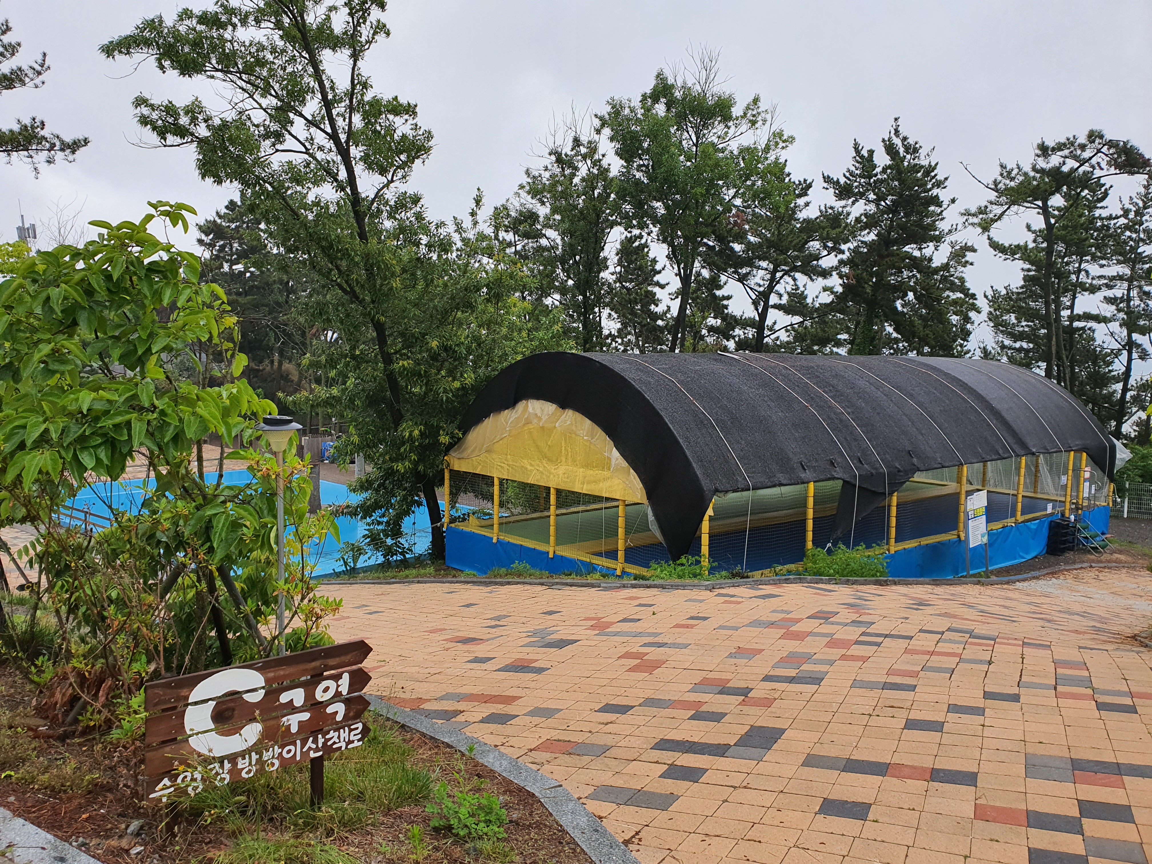 C구역은 트램펄린, 수영장 그리고 그 밑으로 가면 산책로가 있습니다.